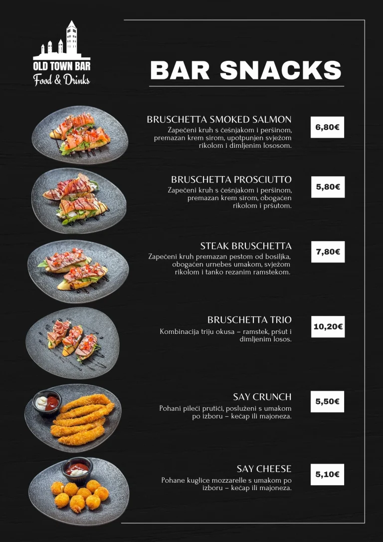 Uživajte u vrhunskim pićima, odličnoj glazbi i nezaboravnoj atmosferi u srcu starog grada. Svaka večer u Old Town Bar-u postaje posebno iskustvo.
